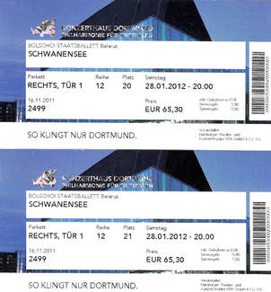 Есть два лишних билета на "Лебединое озеро" в Дортмунде, Концертхаус, 28.01.2012