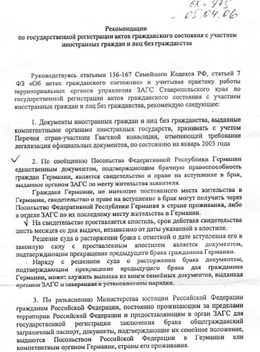 А некоторые принесли грабли однажды, т.е. предъявили для росписи данный документ- теперь вот наши не слишком умудренные работники ЗАГСов считают, что это есть самый правильный документ, по которому немец обязан жениться, иначе будут проблемы.