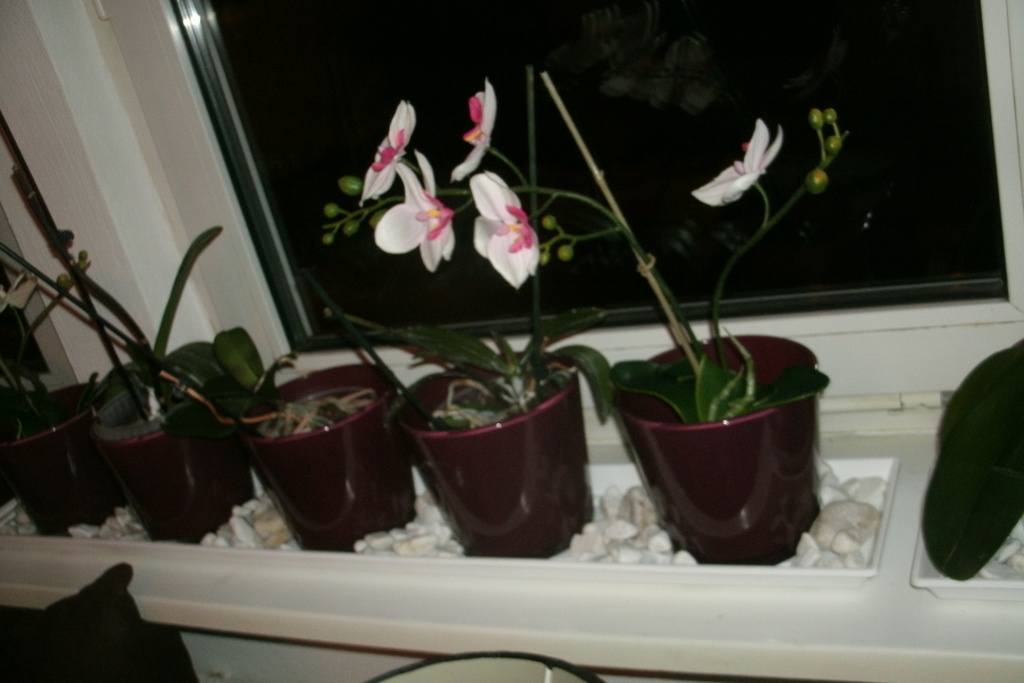 Ну не нравится мне вид пластиковых стаканчиков, ну не нравится. Поэтому засунула их в кашпо. Смысл поддона с галькой в том, что я буду наливать туда воду и вода испаряясь будет поддерживать влажность вокруг орх. Да я гальку могу и в кашпо напихать и на нее поставить орхи, тогда и получится как вы говорите, вода будет испаряясь, увлажнять корни. Но ведь орхи воду то не только корнями, но и листиками улавливают. Топлю я сильно и прошлой зимой орхам было некомфортно, Сахара была для них. Это было по обвисшим листьям заметно. Поэтому и хочу их увлажнять, типа тропики им создать. Орхи же прекрасно растут при высокой темп. , при условии, что и влажность высокая. Ну а перепады температур я им устрою,