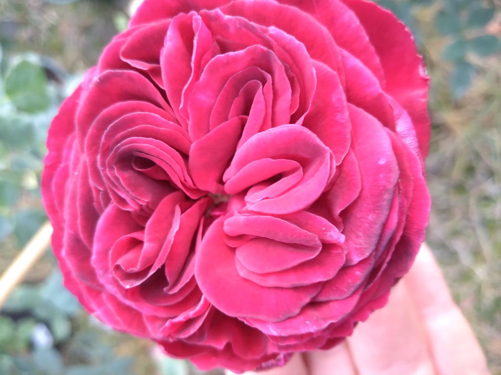 иногда по фото цветки только кажутся похожими, в зависимости от стадии роспуска и ракурса фото. В прошлый раз я показывала мамину розу, которая совсем другая и цветом и строением цветка и Вам тогда тоже показалось, что она на Вашу похожа. Красных сортов вообще очень много и по фото очень часто оттенок искажается.