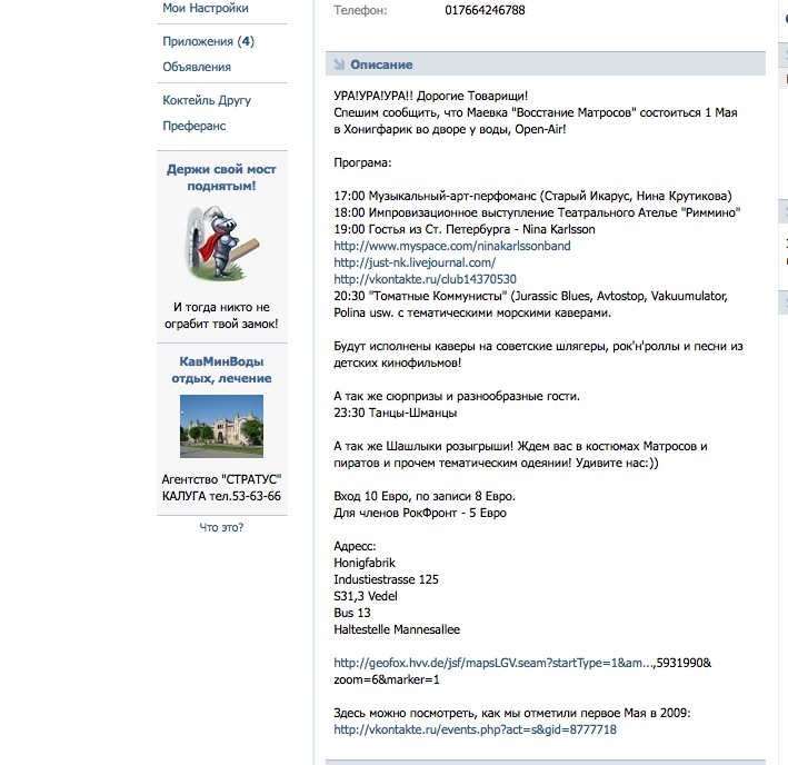 1 Мая МаЁвка в Honigfabrik! MATROSEN AUFSTAND! 17:00 !