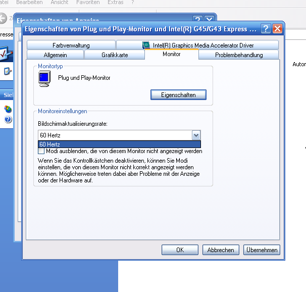 сначало уберите птичку-Erweitern, Monitor-под цифоркой 60 и затем выбераем нужное значение.