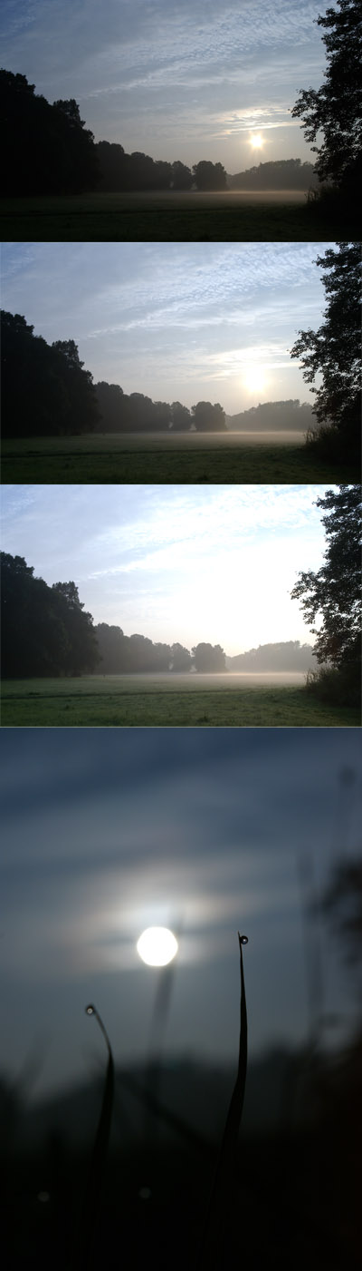Пейзаж - из трёх, роса - из одного снимка вытянул, см. ниже.