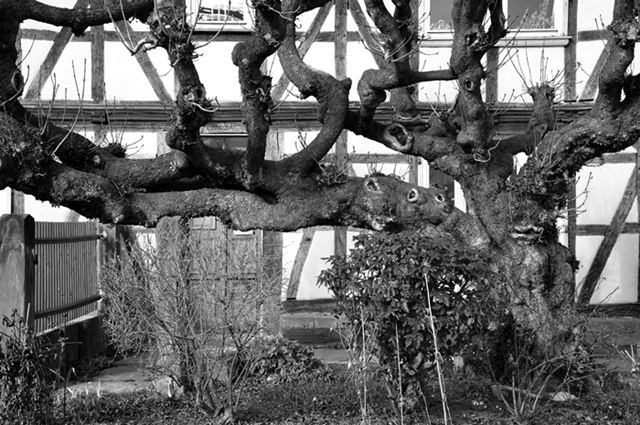 Такое дерево у нас поблизости. По-моему, ветка чересчур посередине. Надо ещё поснимать.