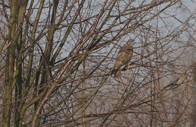 Канюк...Молодой еще. Лапы и клюв желтые. Я их прямо в черте Гамбурга несколько раз видел...А ловят они здесь кроликов,-несколько раз видел растрепанные тушки...