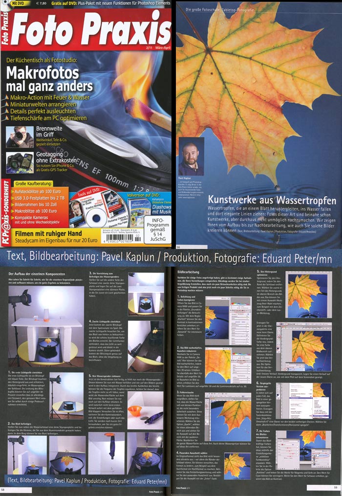 К слову. Вышел первый наш совместный с Павлом Каплуном проект: Die große Fotoshule: Tablettop-Fotografie. Опубликован в журнале Foto Praxis 2/März-April. Не знаю сколько у него читателей, но думаю больше чем 10-15 будет.