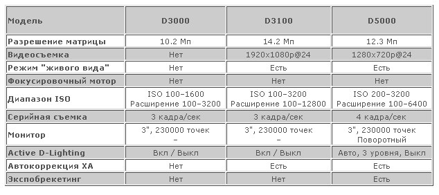 "Что есть у д3100 чего нет у д3000?"