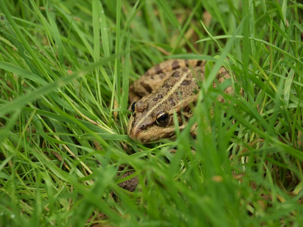 Скорее всего это и был ОН. Это прудовая лягушка. Или лягуХ. В это время года самцов в воде вообще подавляющее большинство. Они там поджидают еще не отметавших икру дам. А те в свою очередь - пришли отметали и опять на сушу. У самцов в свою очередь из-за долгого сидения и ожидания свиданий в воде в брачный период увеличиваются плавательные перепонки на задних лапах. Ну надо же как-то нормально плавать... Это есть отличительный признак. Плохо видно, но мне кажется у этой лягушки достаточно большие, чтоб с большой долей уверенности сказать, что это ОН.