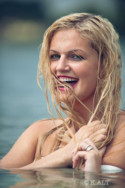 Цепляет фото, цвет классный, фигура девушки, ножки, брызги воды........ну что с вырождением лица?