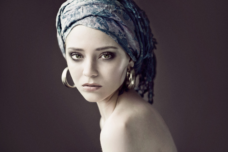лицо и бандура на голове по идее должны быть одним целым в композции, а тут ты бандуру спрятала за косой косяк... еше и провал теней образовался втом месте... короче верхняя часть получилась лишней т.е не рабочей т.е. вообшемто если бы не притензия на гламур это было бы ок, но тут лицо с притензией на гламур, а верняя часть снимка в адрерграунде.. плюс занавесочка упрощает весь натюрьморд..на белом или каком другом ксветлом тоне было бы мне кажется намного стилънее даже с косяком.. но без пряток за него))