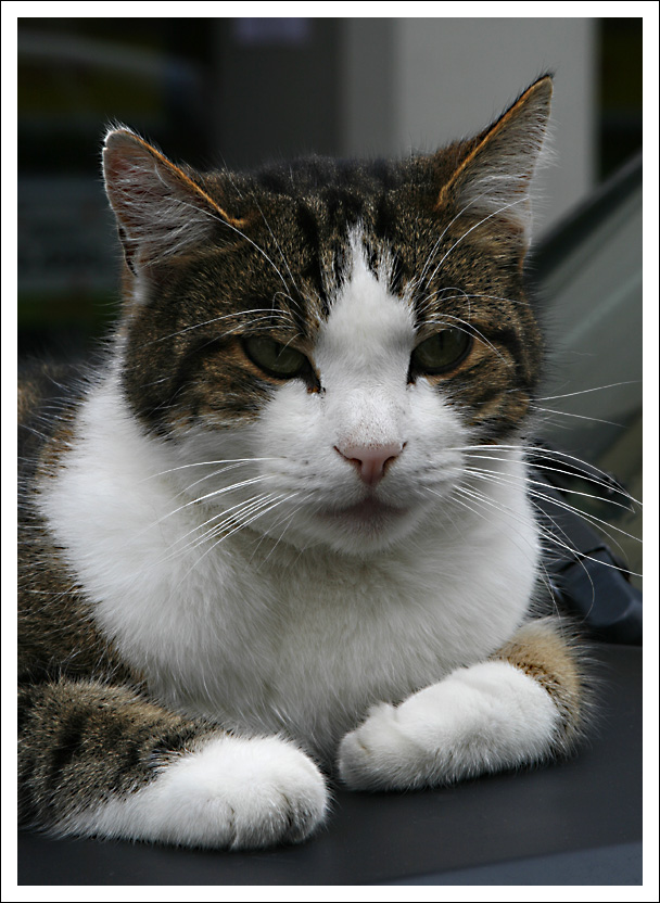 Хозяин нашей автостоянки, любимое место отдыха - капот автомобиля.
