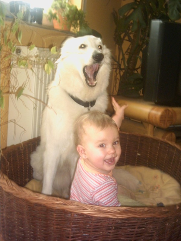 Зы. Собачка ваша очень красивенькая и глаза добрые. Но она же очень лохматая и ваш ребёнок сидит вместе с ней в её корзинке - это не вредно?