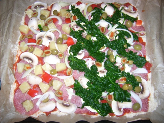 П.С. Можно добавить в тесто в самом конце ешё и черных оливок.