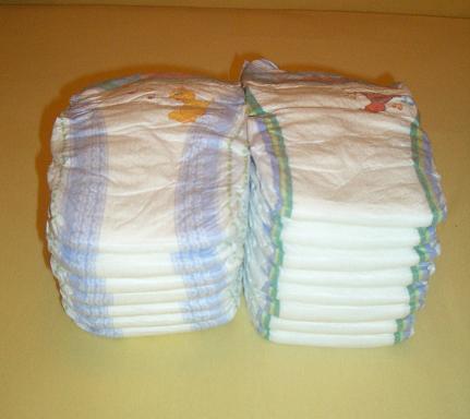 (на фото слева - нормальные памперсы из старых запасов, на правом фото - вчерашние из новой пачки)