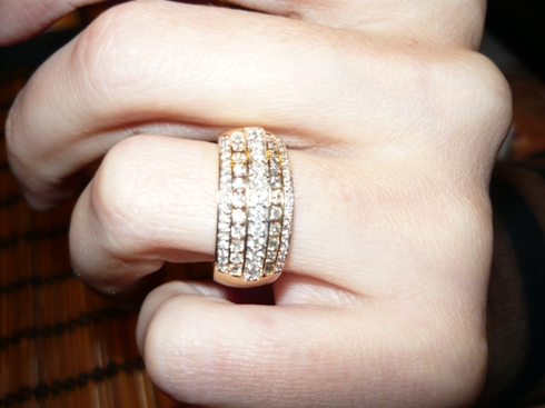 1 карат (69 штук) за 699 евро (два раза уценено, с 1200 до 999, потом до 699 - ангебот до 31 января!) В Кауфхове подобное колечко на 1 карат (116 мелких бриллиантов за 1299 лежит, у Крист 0, 75 карат 50 камней той же чистоты за 1499 евро)