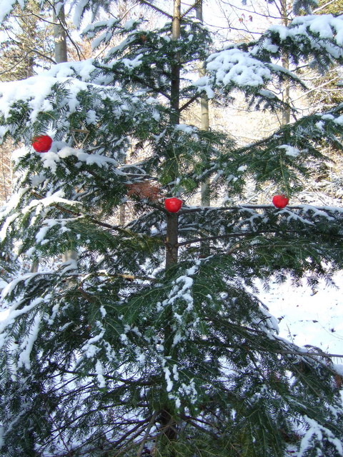 нет,Алёнка,пришли в лес,вижу -яблоки на ёлке..