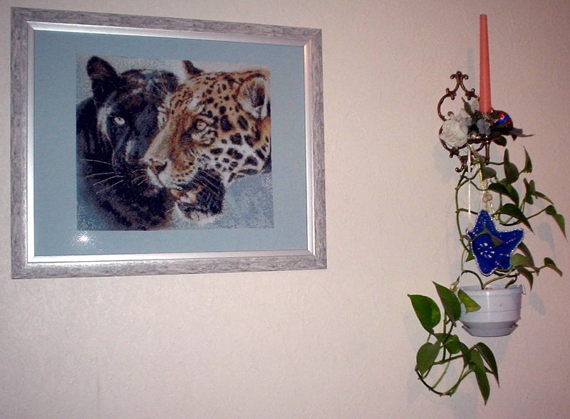 Это одна из моих вышитих картин . Гостинная комната .Снимок сделан перед рождеством ,поэтому там украшения новогодние .