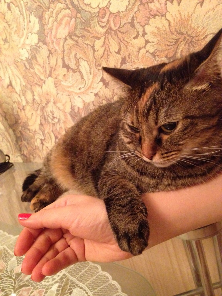 А это мое спасенное животное - котенок на перекрестке залез в колесо машины (стояла на светофоре), мы это увидели и стали кричать водителю, вытащили (образовалась пробка, водители других машин помогали - на работу хотелось) и куда было этого спасенного котенка после этого девать - только забрать себе