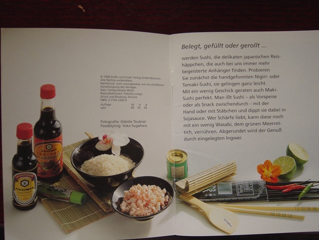 Как купишь на Фридрихштрассе эту книжку, сразу затем едь на Иммеманштрассе в японские магазины за японским рисовым уксусом, нори блэттен, японским рисом и соусами...ну и готовь