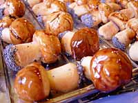 Вскипятить 2/3 стакана сахара с 4-мя столовыми ложками воды. Тонкие концы ножек обмакивать в получившийся сироп, соединять со шляпками и выкладывать на просушку. Через полчаса-час сироп прихватится. Тогда можно, действуя достаточно осторожно, работать с грибами дальше. Сироп к этому времени остнет, поэтому его надо будет нагреть, добавив ложку воды и помешивая. Теперь нужно имитировать замлю на ножках. Для этого следует обмакивать грибы ножками сперва в сироп, затем - в ╦мкость с маком. Дать "земле" немного времени прихватиться, затем можно приступать к завершающему этапу - окраске шляпок. Для этого нужно добавить немного воды и 1-2 ст. л. какао в остатки остывшего сиропа, и снова его вскипятить. Окунуть грибы шляпками в эту помадку. Оставить сохнуть. Хорошо оставить на ночь для окончательной просушки.