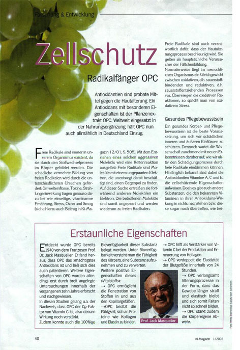 - OPC verlangsamt alterungsprozesse in der Form, dass das Gewebe länger stratt und elastisch bleibt und sich somit Flten nicht so schnell bilden.