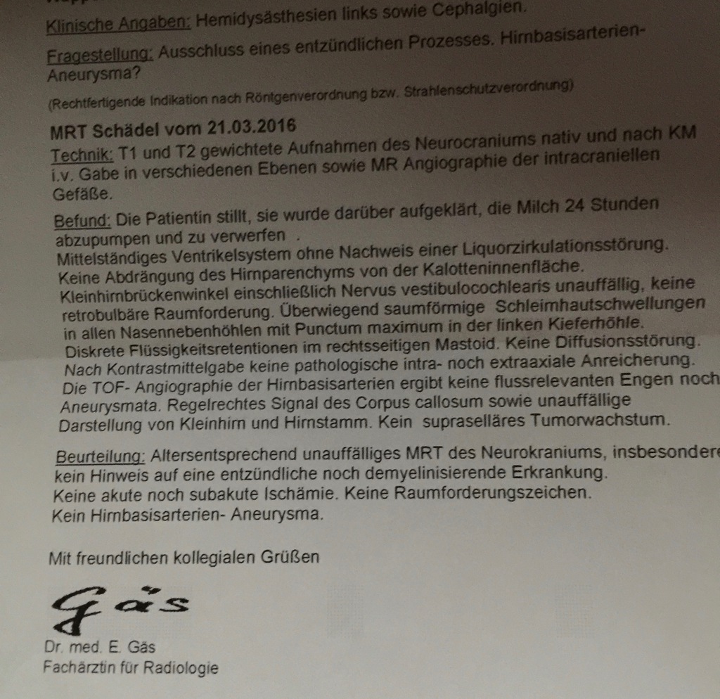 Абсолютно нормальный результат: рассеянный склероз, другие хронические и острые заболевания гол. мозга, а также патология сосудов исключена.