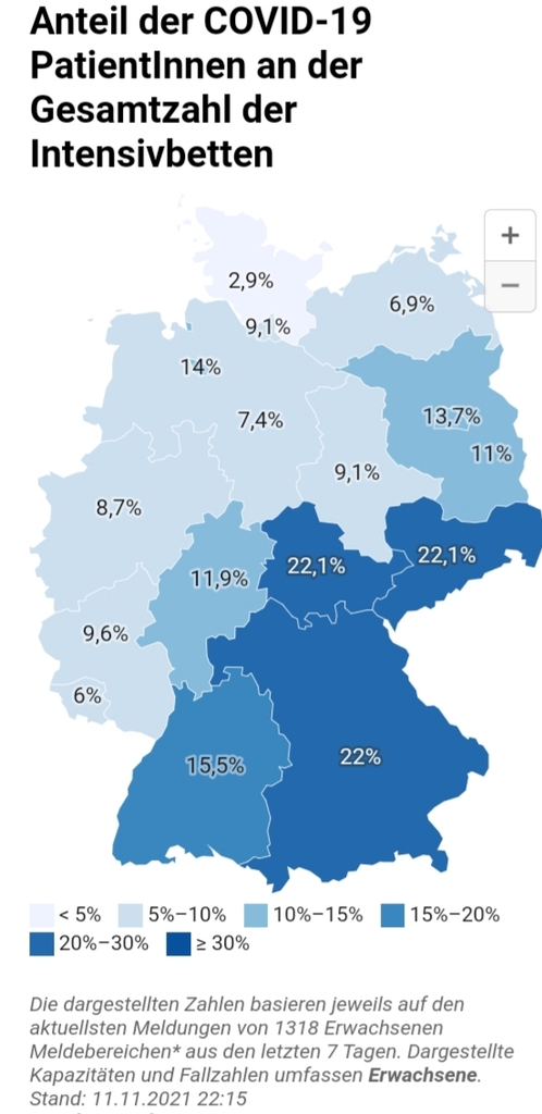 Ковидные больные занимают максимум 22% мест в интенсивах, при этом инценденц в Баварии гораздо выше среднего по Германии. Медицинскую систему рушат 80%-90% пациентов, не болеющие ковидом, если следовать вашей логике..