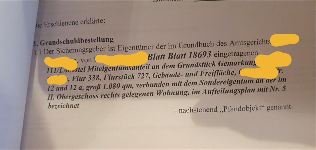 Нужно внести рассчитанную прощадь грундштюка, которая приходится на тебя (По твоим данным это 111/1000 от общей площади в 1080 метров)