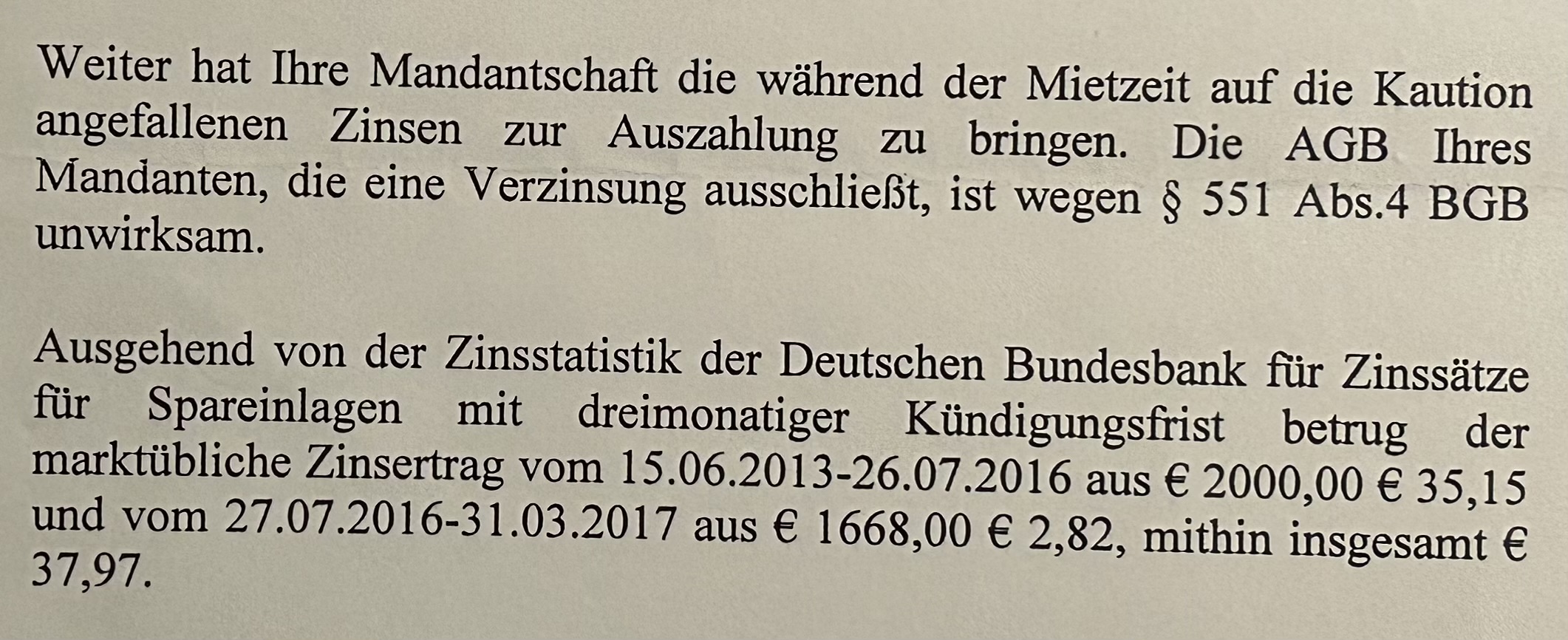 После нашего отъезда адвокат заставил Vermieter-a несмотря на это выплатить Kaution с Zinsen.