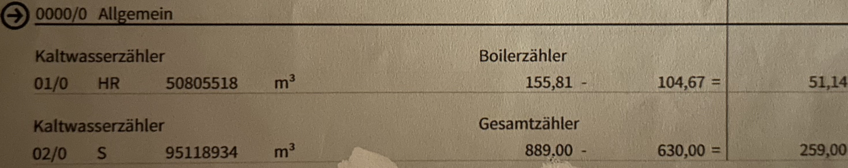 В 2024 году в части Allgemeinzähler стоит общий расход горячей воды и общий расход холодной воды. А вот в 2025 году стоит только общий расход горячей воды, счетчик холодной воды просто исчез с Abrechnung 🤔 Так что эти 150м3 взяты неизвестно откуда.