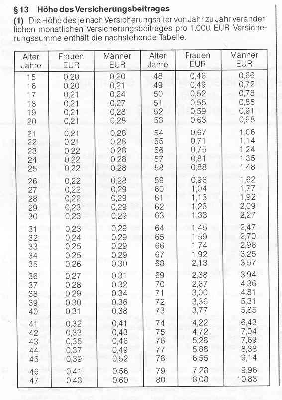 Маловато информации для обсуждения. В страховании жизни есть несколько тарифных вариантов: с постоянным покрытием, с линейно снижающимся покрытием, с нелинейно снижающимся покрытием, с различным использованием Überschuss, и много других факторов. При этом у каждой страховой компании свои критерии оценки рисков.