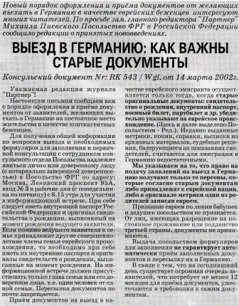 Более того, в журнале "Партнер" в ╧"5 за 2002 год на стр. 11 написано, что с 14 марта 2002 года издан Консульский документ ╧ RK 543 / Wgl., где написано и выделено жирным шрифтом, что