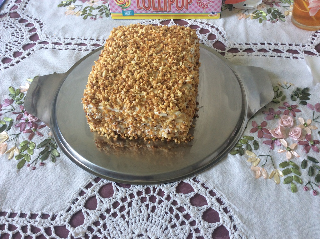 Крем я делала сметанный, но лактозефрай, взяла баночку Шманд (она 150 г всего) и Зане, крема хватило и на бока с лихвой.