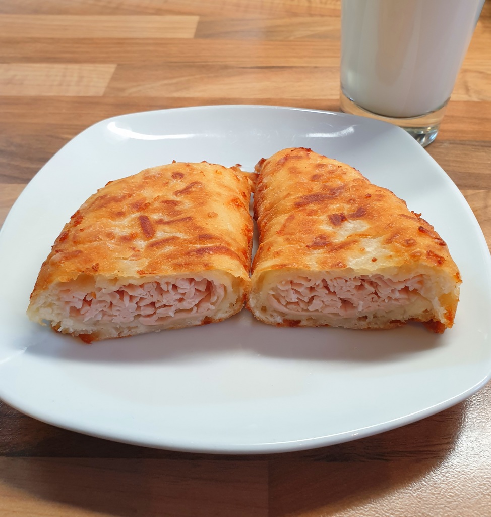 Сырные лепёшки с колбасой. Рецепт давала в чебуречной теме.)