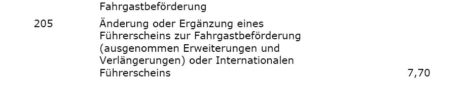 Нашел похожую сумму под номером 209, но тоже не клеится, так как Probezeit ist schon vorbei и разрешения на перевозку людей (Fahrgastbeförderung) у меня нет.
