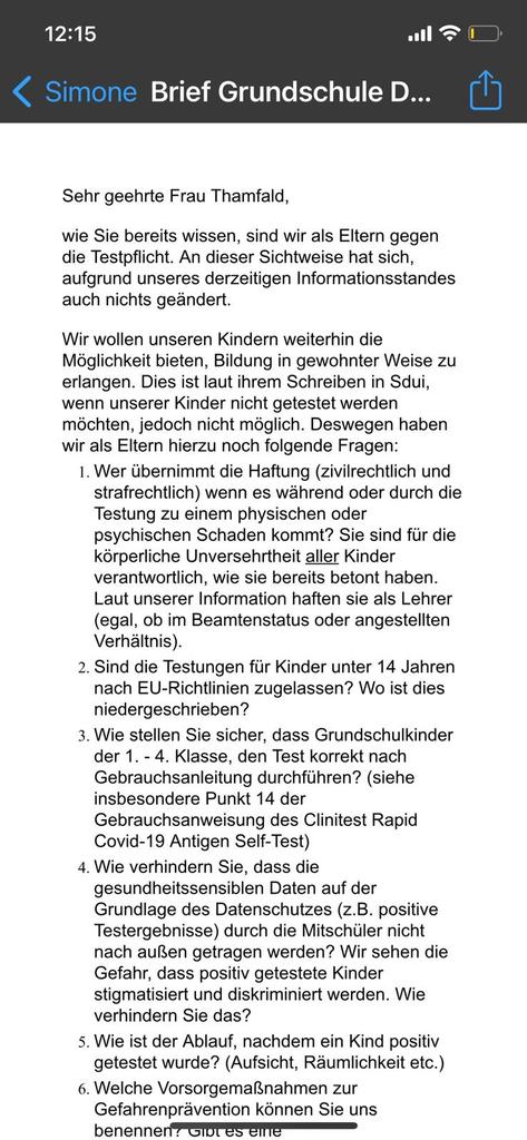 Вот интересная статья: Eilantrag gegen Corona-Testpflicht an SchulenНе знаю, насколько статья успела устареть, но можно поинтересоваться какое было решение.