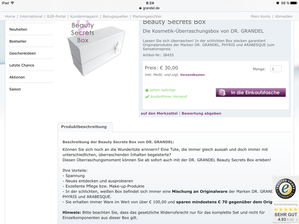 Да, быстренько... Вот у Medikamente-per-klick хорошо - несколько недель был бокс в продаже... Не пойму, чем он хуже этого.