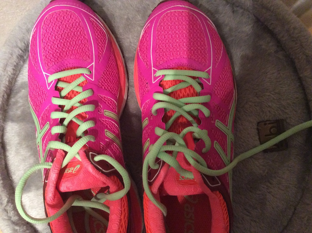 Я надеваю чёрные (у меня других и нет) 3/4 леггинсы, а майки у меня случайно были и в цвете кроссовок, и в цвете шнурок, ну и чёрные ещё.