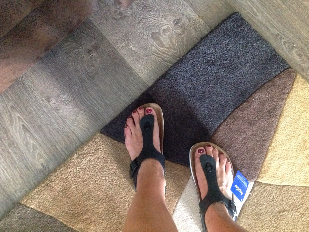 Вот насмотрелась и купила, не знаю смогу в них ходить не привычно как то, педикюр не смотрите стерся .