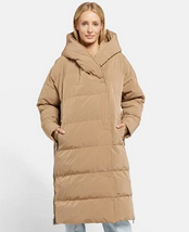 Мне визуально вот этот от Массимо Дутти понравился. Но это не пуховик, там синтетика в подкладе. И отзывы на Заландо плохие - огромный на рост ниже 170 и перекручиваетчя. А внешне - ничего так, я бы взяла, но у меня уже есть длинный от Юникло на поясе. Правда, лёгкий очень. Но я всю зиму тут носила - не мёрзла пока.