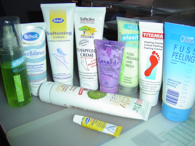 Поэтому сейчас я купила себе три разных крема для ног, четыре разных пиллинга, охлаждающий гель для вен, снимающий усталость спрей для ступней, крем для удаления натоптышей и большую 400 граммовую банку VitalßFussbad.