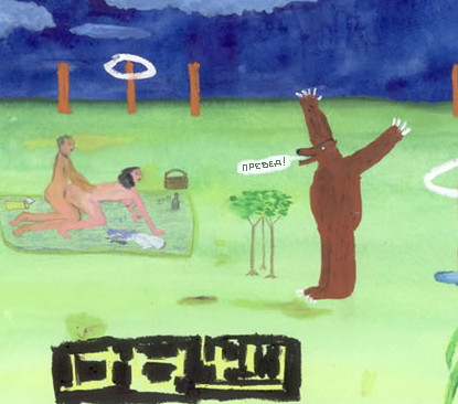 Наверное их машина после знакомства с медведем,вернее что осталось.