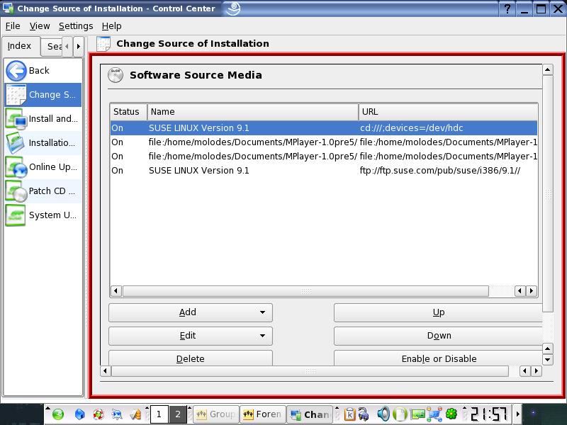 там у тебя на скриншоте в фтп-источнике в конце стоит 2 слэша - многовато будет, может в этом причина. А директорию, в которой лежит твой mplayer---.rpm совершенно не обязательно вносить в источники. Достаточно кликнуть по rpm-файлу мышкой и получишь предложение установить программу при помощи YaST. Ну и естественно в и-нете надо быть при установке, чтоб в случае необходимости, оттуда через фтп пакеты нужные тянулись