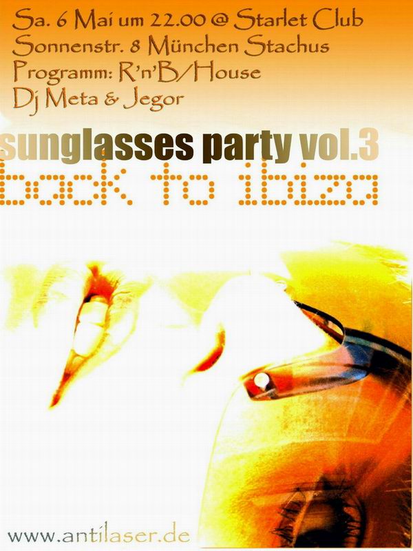 В эту субботу 6 Мая состоится очередная долгожданная House & R'n'B вечеринка Sunglasses Party Vol.3 в центре Мюнхена на Sonnenstr.8 @ Starlet Club