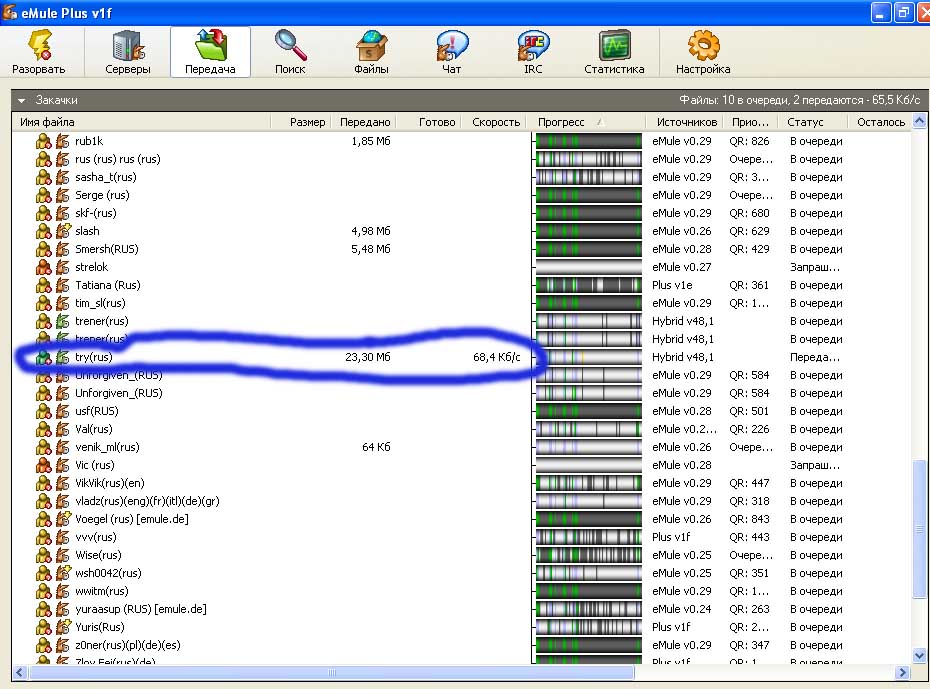 Речь шла о высокой (68,4Кб/сек) скорости download`a с одного юзера на муле.