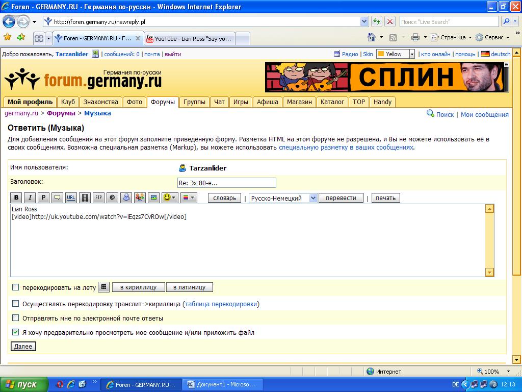 А можно поподробнее как вам удалось вставить видео ссылку. У меня почему-то тоже не ид╦т,