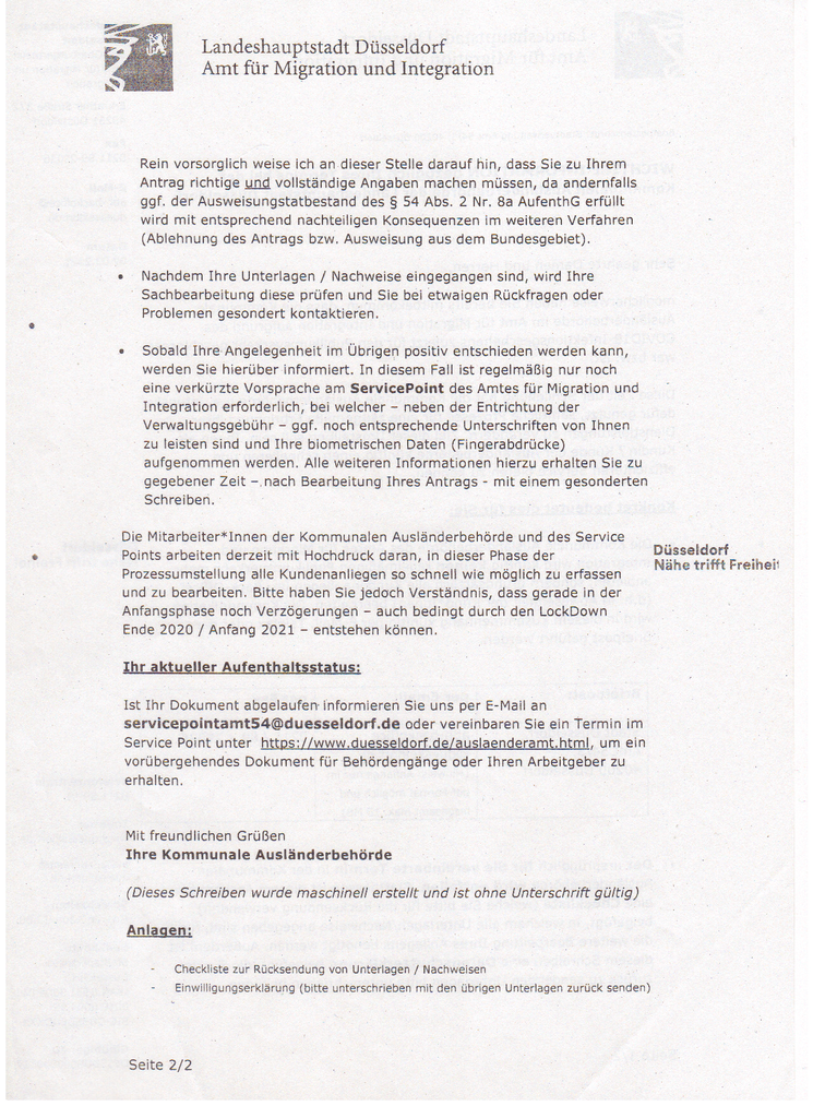 1. я получила очередное продление на нахождение в Германии на 3 месяца