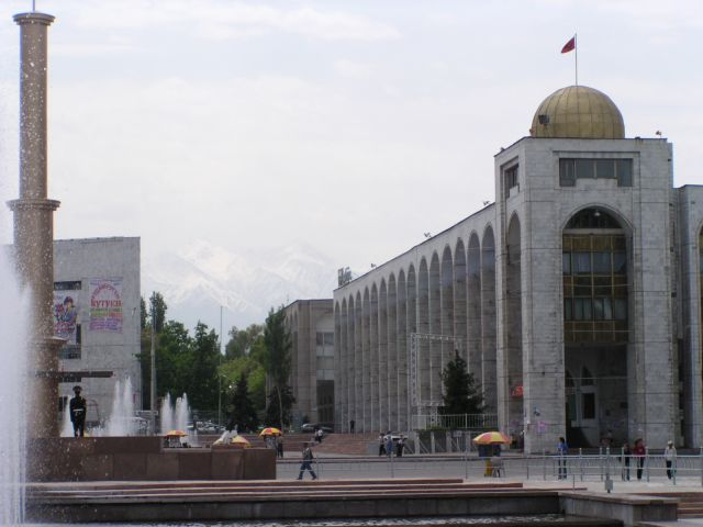 Бишкек стоит....куда ему деваться.Когда я была,захватила все времена года...как обычно в это время бывает.