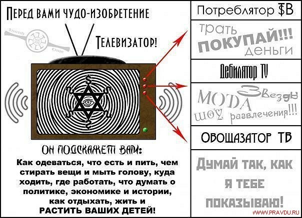 Таким образом, нас очень сильно зомбируют по тв, особенно когда мы смотрим его фоном.
