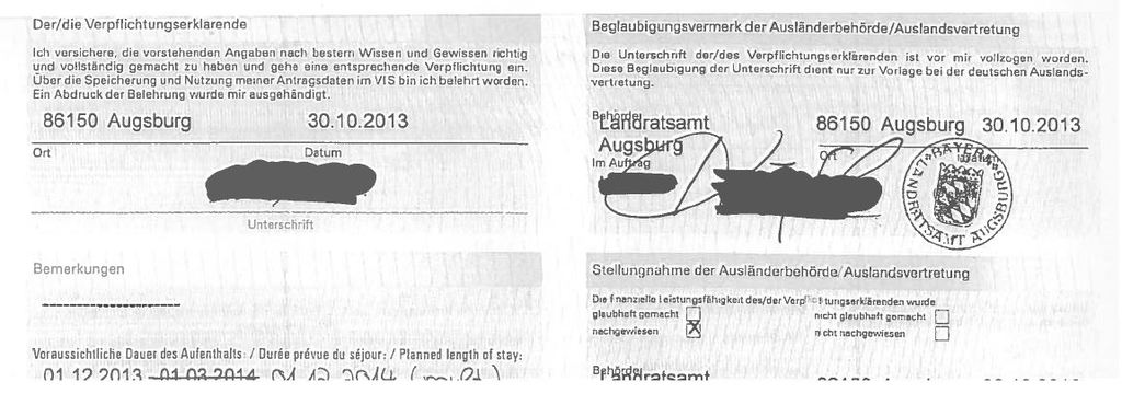 Я делал сегодня 2 Verpflichtungserklärung(a). Один тёще на годовую мультивизу и один знакомому на одноразовую визу.